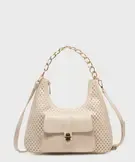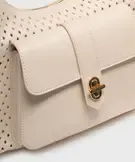 Sac à main ajouré à anse en chaîne dorée femme beige clair