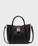 Sac à main en cuir imitation avec anses et bandoulière femme noir