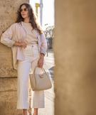 Craquez pour ce sac à main femme au format généreux, à la fois pratique et élégant. Il se porte à la main grâce à ses deux anses rondes ou à l’épaule grâce à sa bandoulière ajustable et amovible par mousquetons. La patte aimantée et le zip protègent le compartiment principal doublé. Ce dernier contient une poche zippée et une poche plaquée pour organiser vos essentiels. Ce sac à main se distingue par ses coutures graphiques et ses détails en métal doré, notamment sur la patte aimantée : son décor bijou apporte une touche sophistiquée à l’ensemble. Pieds de sac en métal doré pour la protection contre l'usure.