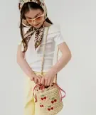 Ce petit sac à main pour fille à la forme seau est confectionné en paille de papier tressée, ce qui le rend ultra léger et parfaitement adapté à l'été. Son design craquant se distingue par d'adorables cerises brodées sur l'avant et une doublure intérieure au motif vichy. Pratique et sécurisé, le sac se ferme par des liens coulissants pour garder ses trésors à l'abri. Il s'adapte à toutes les envies grâce à ses anses pour un porté main ou sa bandoulière pour un porté croisé tout en liberté.