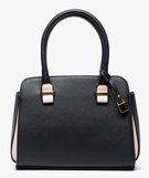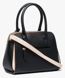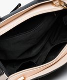 Sac à main rigide sobre et élégant, qui se porte à la main ou au creux du bras, grâce à deux anses rondes. Les anses sont dotées d'une finition métal et accessoirisées d’une breloque assortie. La forme légèrement trapèze du sac offre un bel espace de rangement, facile à organiser. La doublure intérieure contient deux poches ouvertes et une poche zippée. On note l'aspect bicolore moderne de ce sac à main femme ! 3 poches intérieures + 1 poche zippée au dos. Bandoulière amovible par mousquetons.