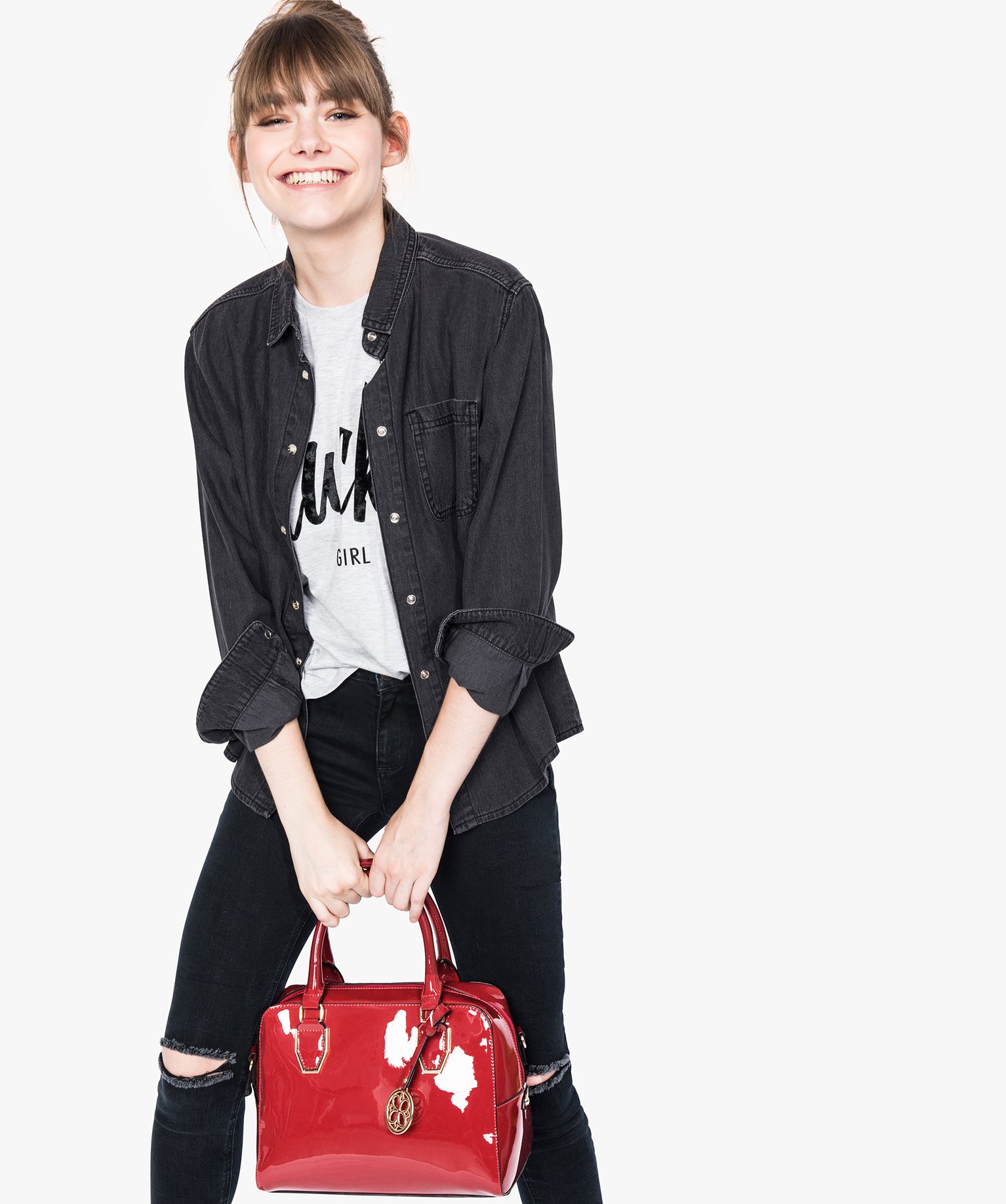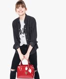 Sac à main femme vernis avec détails dorés rouge