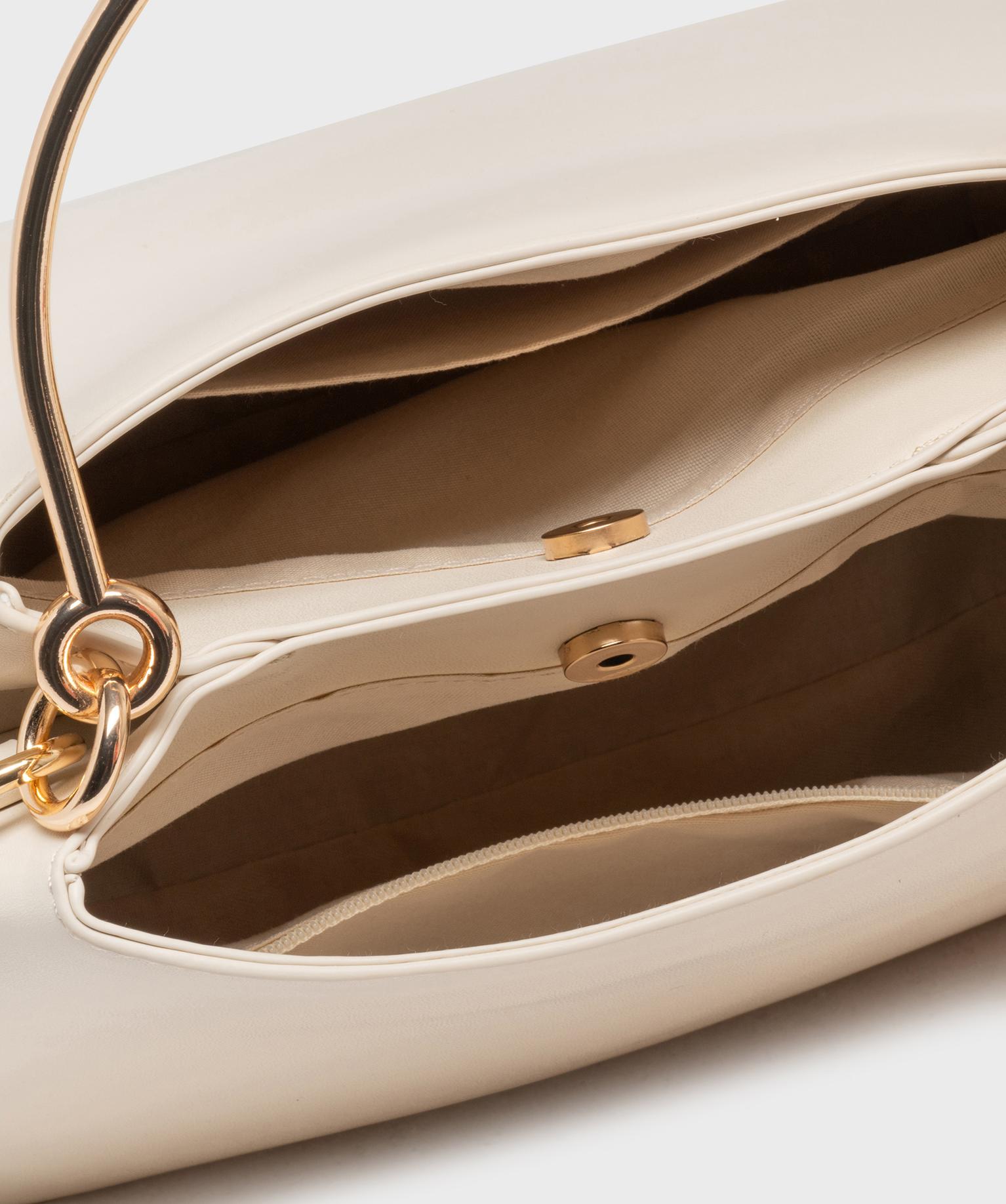 Sac à main graphique à anse métallique femme beige clair