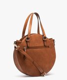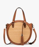 Sac à main rond bimatière avec face tissée beige