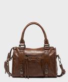 Sac à main verni mat à clous et bandoulière amovible femme cognac