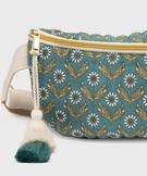 Sac banane en coton matelassé avec motifs fleuris femme bleu clair