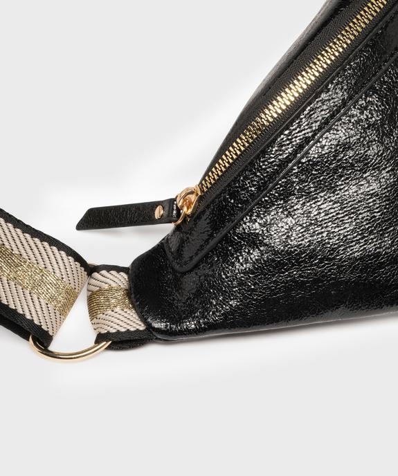 Sac banane en matière vernie avec bandoulière pailletée femme noir