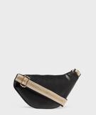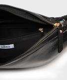 Sac banane en matière vernie avec bandoulière pailletée femme noir
