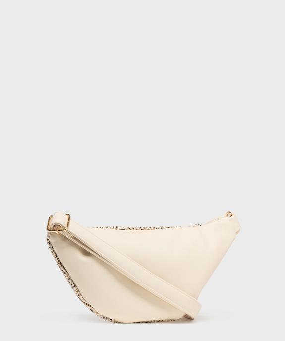 Sac banane en toile tissée avec bandoulière pailletée femme ecru