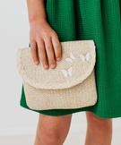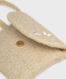 Un joli sac en paille idéal pour accessoiriser les tenues estivales des petites filles. Incrusté de fil métallisé et orné de petits papillons brodés, ce sac pour fille ajoutera une note romantique et girly aux looks du quotidien et accompagnera avec élégance les tenues de cérémonie. Il se ferme aisément par un bouton aimanté sous le rabat et offre un petit compartiment. Il est doté d’une bandoulière tressée à porter sur l’épaule ou de travers. Doublure textile.