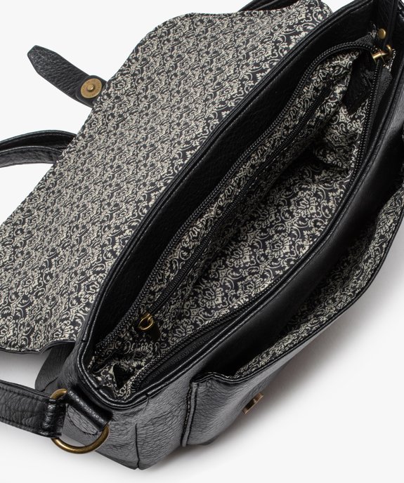Vous allez adorer ce sac besace féminin, sobre et très pratique. La simplicité de ses lignes associée à de petits détails soignés comme les brides, les boucles en métal vieilli, en font un modèle polyvalent. Il vous accompagnera du matin au soir. En version unie ou bicolore avec rabat brillant, ce sac à bandoulière est toujours élégant. Son rabat fermé par boutons aimantés révèle une jolie doublure imprimée mais surtout de nombreux compartiments : une poche plaquée, un compartiment principal zippé avec une pochette plaquée et une pochette zippée. Grâce à sa bandoulière ajustable, ce sac femme se porte à l'épaule ou croisé.