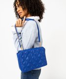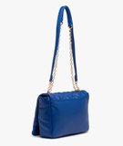 Sac besace à rabat matelassé et anse en chaîne femme bleu