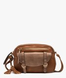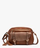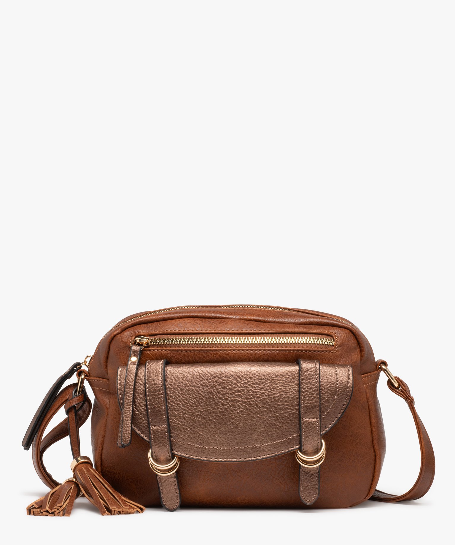 Sac besace compact avec rabat irisé et pompons femme marron vif
