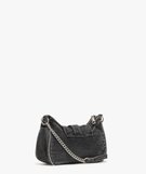 Véritable accessoire de mode, cette mini besace en jean avec bandoulière en chaîne offrira un look décontracté et rock à vos tenues. Le sac besace présente un design compacte, idéal pour transporter l'essentiel. Son compartiment principal zippé et doublé contient une pochette zippée intérieure. Il est sécurisé par une large bande à bouton aimanté. La bandoulière est en chaîne et jean, pour le style et le confort au niveau de l'épaule. Détails en métal argenté.