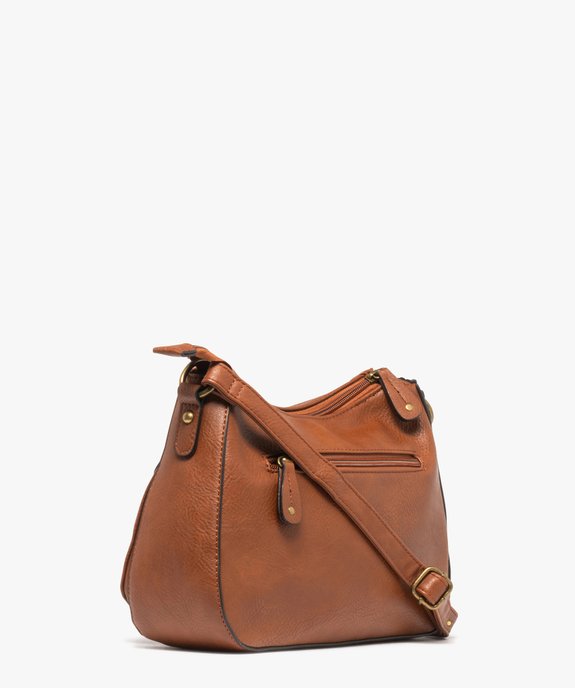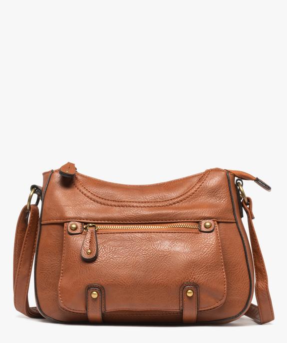 Pourvu de nombreuses poches bien placées et fermées, ce sac besace pour femme est aussi pratique qu'esthétique. Il compte pas moins de 7 emplacements pour ranger vos essentiels : 1 grand compartiment zippée avec 2 poches plaquées et 1 poche zippée intérieure, 1 pochette zippée et 1 pochette à bouton aimanté à l'extérieur sur l'avant, et 1 poche zippée à l'extérieur au dos. Top pour rester organisée ! Le sac à bandoulière affiche une allure moderne, avec une matière synthétique cuir imitation grainé bien souple, des détails en métal doré vieilli.