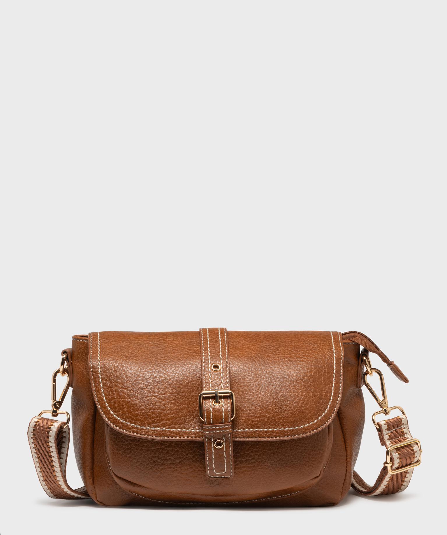 Sac besace souple et grainé à bandoulière fantaisie amovible femme marron clair