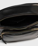 Ce sac à bandoulière ajoutera une touche moderne et tendance à vos looks. Confectionné dans une alliance de matière lisse et brillante, ce sac pour femme arbore une allure glamour tout en conservant un design pratique et dynamique. Il est doté de deux compartiments zippés, un grand avec pochette intérieure zippée et un plus petit sur l’avant. Un poche au dos permet de ranger facilement de petits objets ou des clés. Doté d’une large bandoulière en toile incrustée de fil pailleté, ajustable en longueur, il se porte sur l’épaule ou croisé.