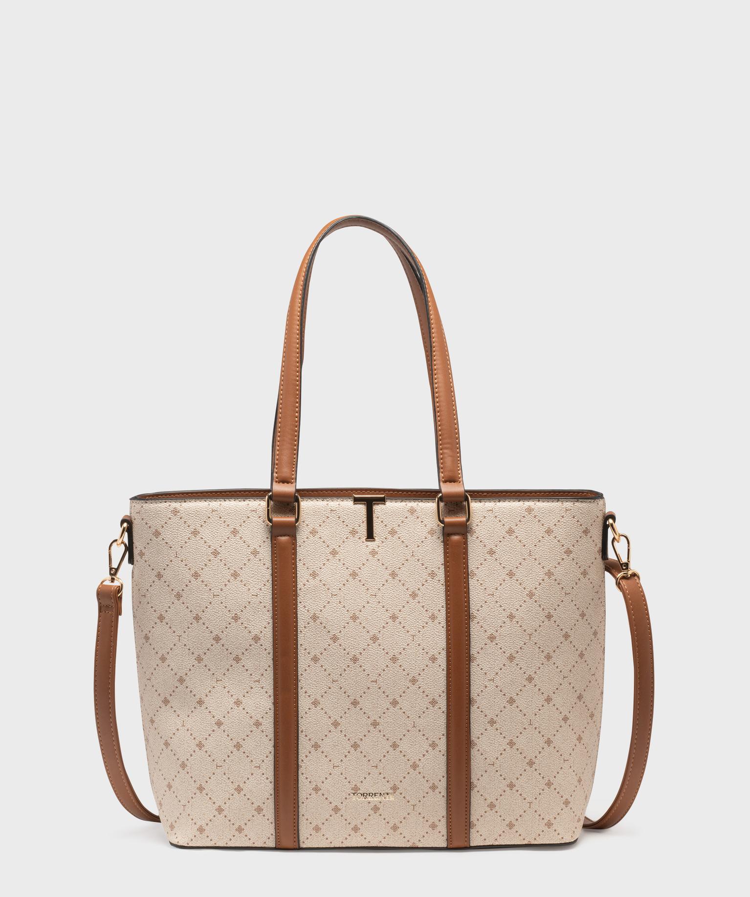 Elégance et praticité sont au rendez-vous avec ce joli sac Torrente confectionné dans une matière texturée et décoré de jolis motifs losanges. Son design raffiné est rehaussé de touches de cuir imitation et de subtils détails dorés, signature de la marque. Ce sac cabas pour femme, fermé par un zip, offre un grand volume de rangement répartis en un grand compartiment, trois poches intérieures et une poche zippée au dos. Doté de grandes anses, il se porte sur l’épaule ou sur le bras, mais peut aussi se porté en cross-body grâce à une bandoulière amovible et ajustable. Ce sac à bandoulière amovible possède des picots métallique qui protègent sa base.