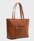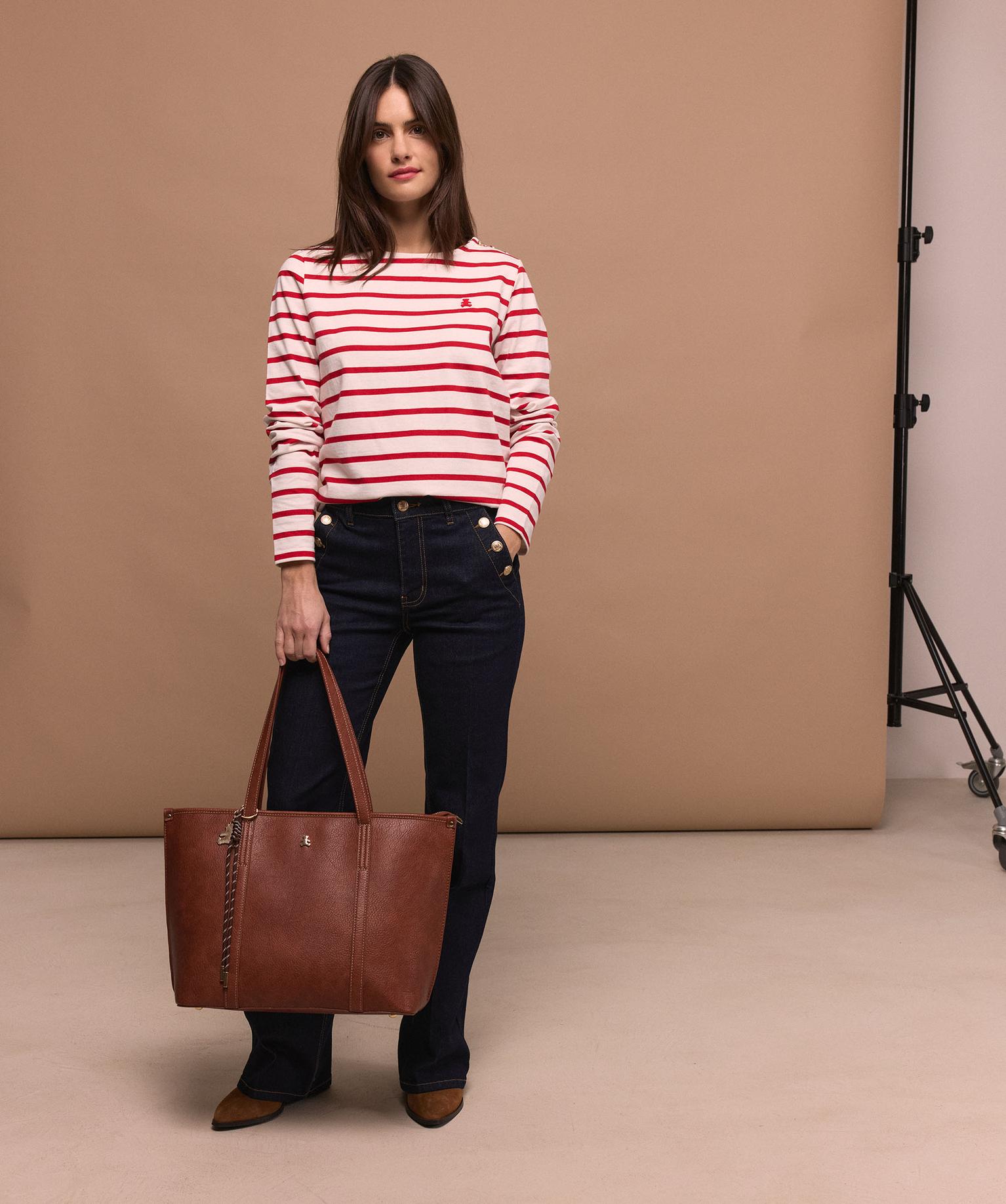 Sac cabas porté épaule avec pampilles amovibles femme - LuluCastagnette cognac