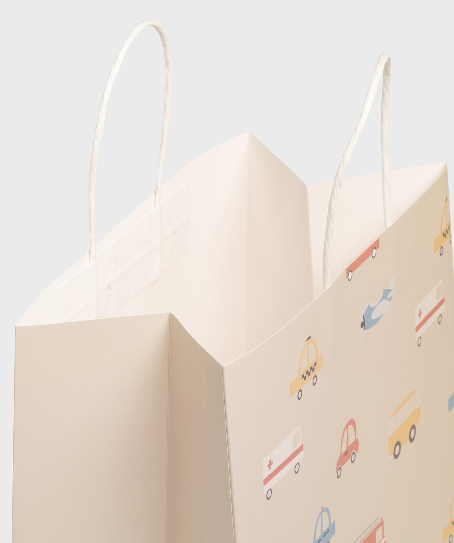 Ce sac cadeau en carton décoré de jolies petites voitures colorées est parfait pour ravir les petits passionnés d’automobiles. Solide et pratique, il accueillera avec soin jouets, livres ou friandises à offrir. Une pochette cadeau enfant idéale pour les anniversaires et les fêtes d’enfants.