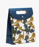 Sac cadeau à rabat avec poignée intégrée motif dinosaures bleu