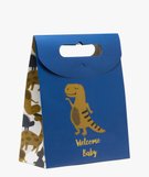 Sac cadeau de naissance à rabat avec poignée intégrée motif dinosaures[MISSING] bleu