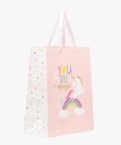 Sac cadeau enfant motif licorne et paillettes en papier recyclé[MISSING] rose pale