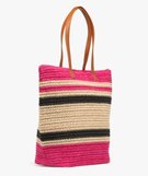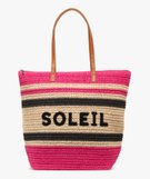 Sac de plage en paille de papier inscription Soleil femme[MISSING] rose