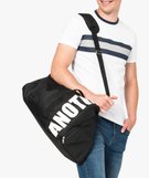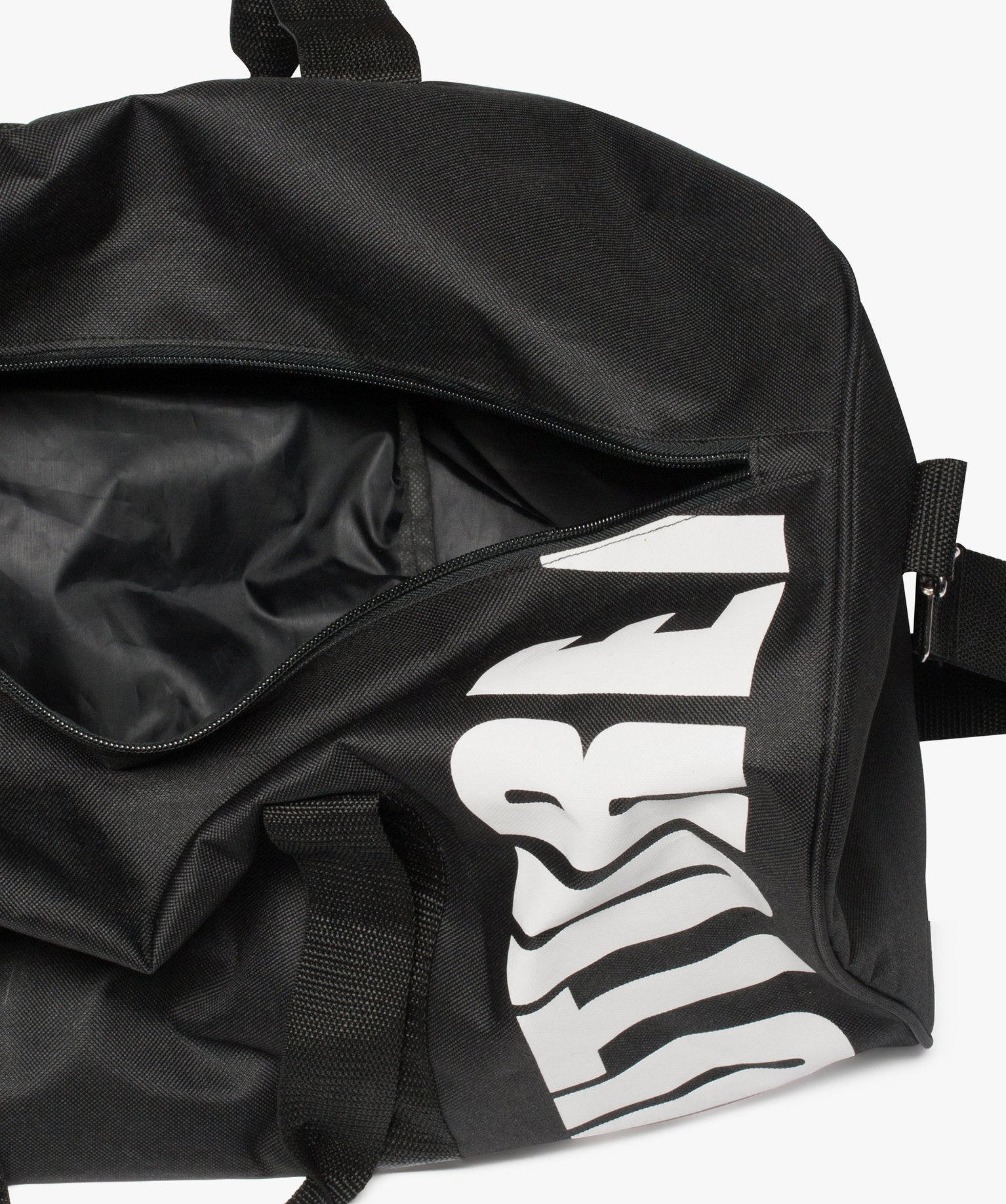 Un très beau volume pour ce sac de sport ! Idéal pour transporter tenue et matériel destinés à vos activités de loisirs mais également pour les week-ends ! On apprécie son ouverture zippée, pratique, la possibilité d’un porté main ou épaule grâce à la bandoulière amovible, ainsi que son compartiment pour chaussures, accessible sur le côté. L’inscription contrastante apporte une note moderne et tendance. À assortir à une sacoche casual.