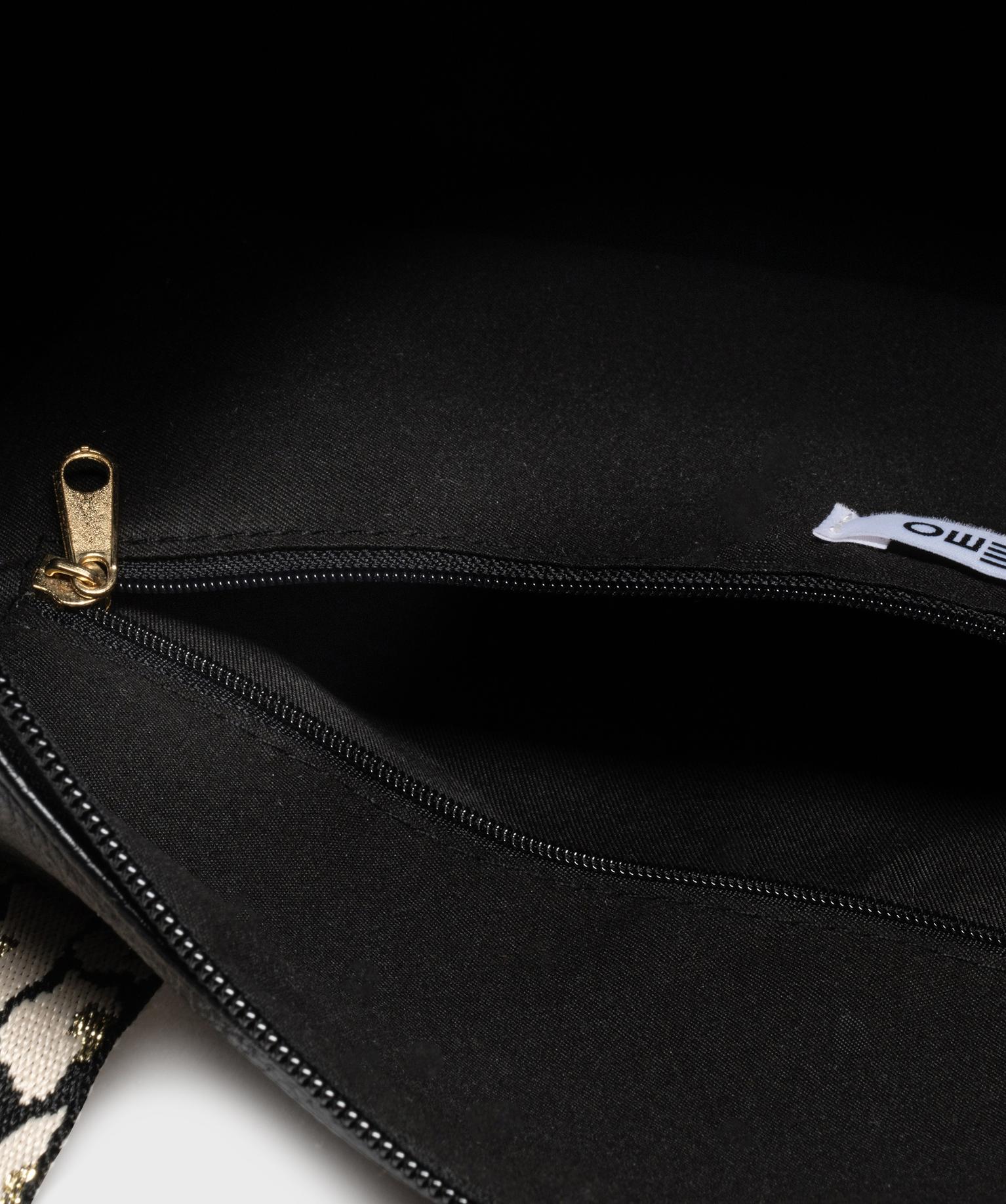 Ce sac pour femme grand format est idéal pour les escapades et les week-ends. Conçu une matière souple et grainée au coloris classique, il mise sur l'originalité de ses anses et bandoulière, imprimées léopard tissées de fils dorés. La bandoulière est ajustable et amovible par mousqueton. Fonctionnel, le sac de voyage est aussi doté d'1 poche zippée à l’avant, une autre à l’arrière, une fermeture supérieure par double zip et, à l’intérieur, une poche zippée. Son beau volume permet d’emporter facilement vos vêtements préférés pour quelques jours.