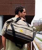 Le sac de voyage Roadsign allie robustesse, style et fonctionnalité. Son grand format rectangulaire, doté d’un fond renforcé par de petits pieds en plastique, est parfait pour les escapades comme pour les entraînements sportifs. L’ouverture intégrale à double zip permet un accès facile à toutes vos affaires. Le sac week-end multiplie les rangements malins : grande poche avant zippée avec compartiment plaqué zippé, poche latérale zippée et poche intérieure zippée pour les effets personnels. Côté transport, vous disposez d'une bandoulière ajustable et amovible grâce à ses mousquetons, et de anses qui se réunissent par une patte scratch pour un porté main agréable. La toile chinée épaisse, relevée de détails colorés et du patch Roadsign donne à ce grand sac une allure à la fois aventurière et élégante.