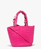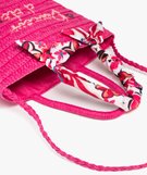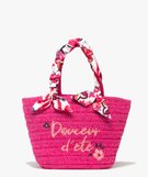 Sac en paille à anse décorée et bandoulière tressée fille rose