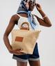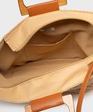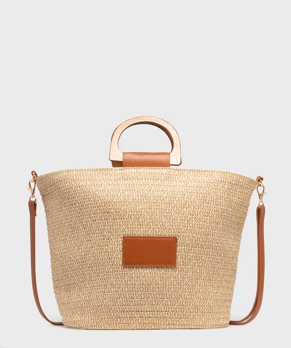 Ajoutez une note naturelle à vos looks grâce à ce joli sac en paille de papier bicolore. Un sac pour femme orné d’un patch brodé sur l’avant et doté de jolies anses aspect bois. Entièrement doublé textile, il offre un grand compartiment et une pochette intérieure, et se ferme à l’aide d’un zip sur le dessus. Ce sac cabas se porte à la main ou sur l’épaule grâce à une bandoulière amovible ajustable par boucle métallique, qui se fixe à l'aide de mousquetons.