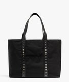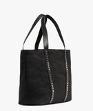 Ce grand sac en toile accompagnera les filles lors de toutes leurs sorties. Grâce à son grand format il permet de transporter des cahiers ou classeurs format A4. Confectionné en toile résistante, il peut même accueillir un ordinateur portable. Ce sac pour fille est agrémenté de bandes en matière synthétique cuir imitation décorées clous métalliques, qui lui confèrent un look rock. Il offre un compartiment, une pochette zippée et une poche sur l’avant. Il se porte sur l’épaule.