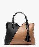 Apportez une touche de fantaisie à vos looks grâce à ce sac bicolore composé d’une matière grainée et d’une matière lisse au coloris contrastant. Un sac rectangle très pratique pour transporter toutes les affaires du quotidien. Il offre un large volume de rangement grâce à ses trois compartiments et ses deux pochettes. Ce sac pour femme est doté de deux anses pour un porté main et d’une bandoulière amovible pour un porté croisé. La pampille accrochée sur l’une des anses apporte une touche de fantaisie supplémentaire. Ce sac à main se ferme par zip sur le dessus.
