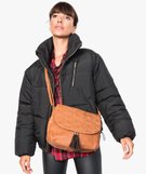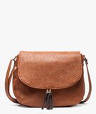 Sac femme forme besace avec dessus texturé marron vif