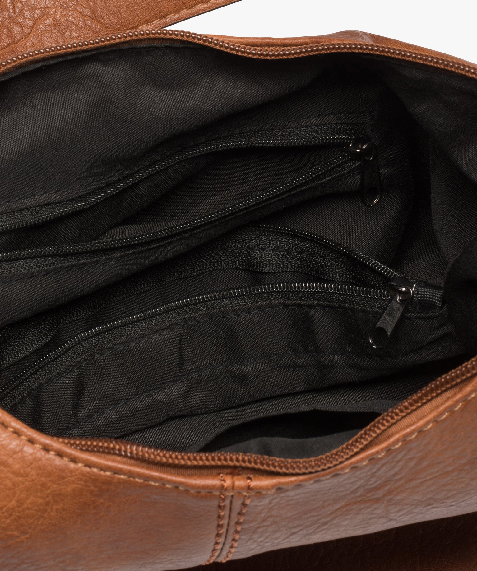Craquez pour le style tendance de ce sac à main. Un sac femme en matière souple qui accompagnera tous vos looks. Côté style, il possède une double surpiqûre sur l’avant et des poches extérieures dont certaines se ferment par zip et d’autres par bouton pression. Les zips sont agrémentés de breloques unies ou à motifs, selon les coloris, qui donnent du style à ce sac à main. L’intérieur se divise en 3 compartiments dont un zippé et trois petites pochettes. Avec ses nombreuses poches, ce sac permet de ranger toutes vos affaires personnelles de manière organisée.