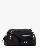 Ce sac multipoches accompagnera les globe-trotteuses dans toutes leurs aventures citadines. Un joli sac pour femme confectionné dans une jolie toile déperlante, résistant aux fines pluies. De forme rectangle, il s’ouvre à l’aide d’un large zip sur le dessus et offre un grand compartiment. A l’extérieur deux poches zippée et deux poches à rabat en cuir imitation et boucle en métal, ajoutent une touche de style. Ce sac se porte croisé grâce à une bandoulière en toile résistante, ajustable en longueur.