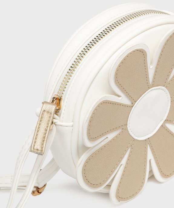 Sac rond à bandoulière avec fleur en relief fille blanc