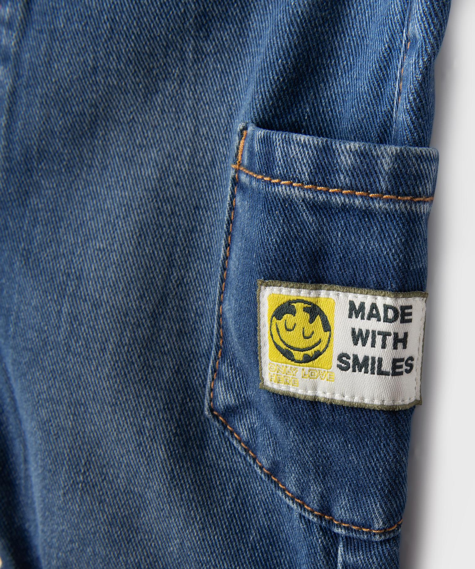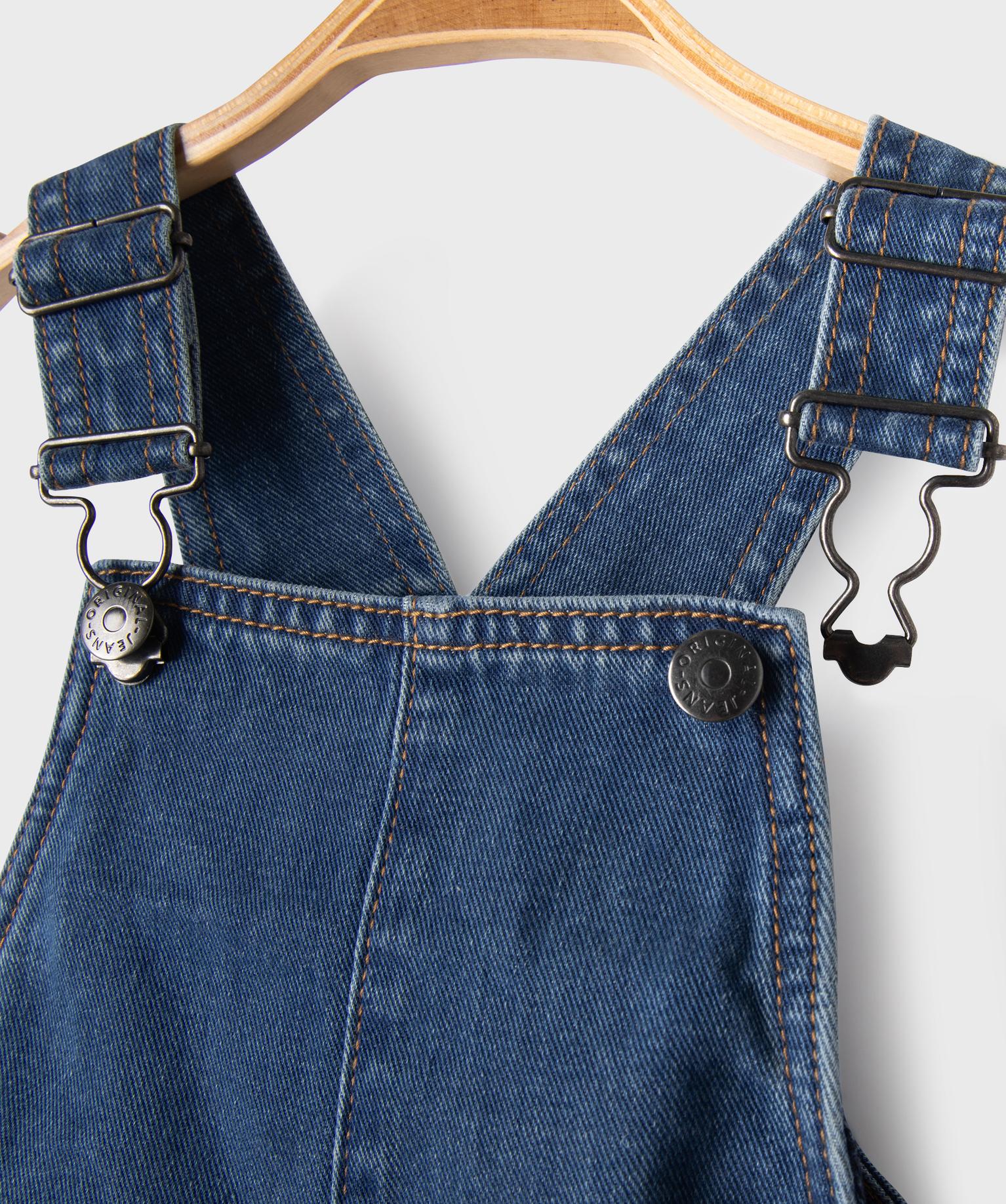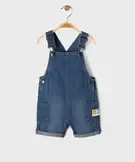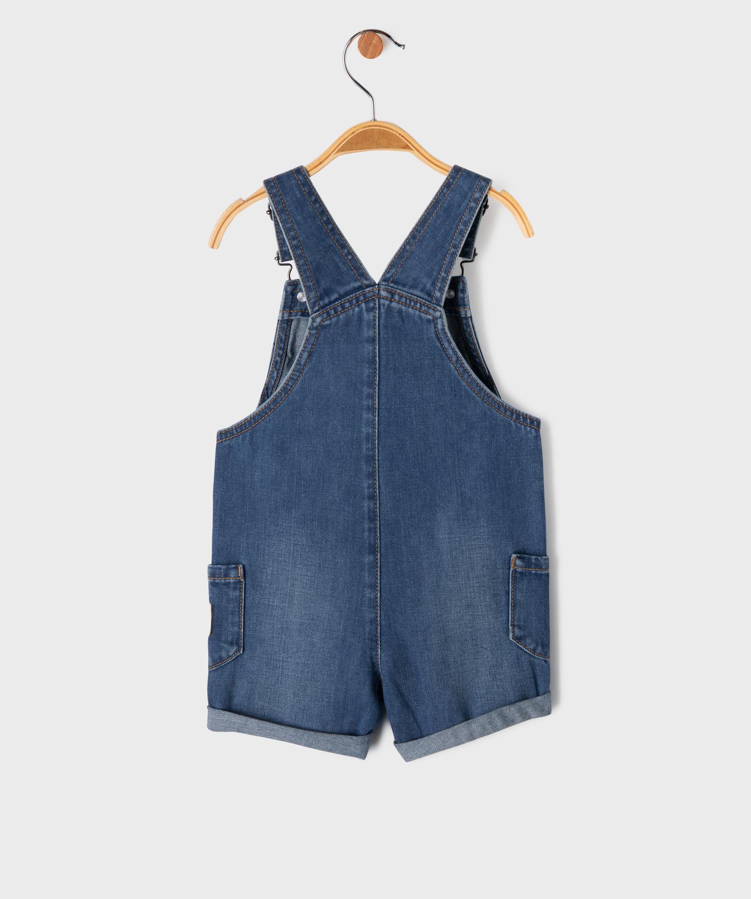 La salopette en jean fait partie des pièces indispensables du vestiaire des minis. Facile à porter et à superposer, elle s’impose comme LA pièce casual à porter tout au long de l’été. Cette salopette courte bébé garçon possède des bretelles ajustables par boucles métalliques et des boutons sur les côtés pour faciliter l’habillage. Elle est dotée de poches plaquées sur les hanches et de revers cousus en bas des jambes qui lui confèrent un maximum de décontraction. Confectionnée dans une toile denim souple 100% coton, elle offre aux tout-petits douceur et confort. Etiquette fantaisie sur l'une des poches.