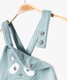 Cette charmante salopette pour bébé garçon multiplie les atouts confort et style ! Spécialement conçue pour les tout-petits, elle est douillette et moelleuse, facile à enfiler et simplifie les nombreux changes quotidiens. Par ailleurs, elle affiche un coloris tendre avec un adorable motif animal sur la poitrine. Cette salopette se porte aussi bien avec un body manches longues, un tee-shirt manches longues ou une fine maille en-dessous. Elle offre à bébé toute la liberté de mouvements dont il peut avoir besoin au quotidien. Entrejambe pressionné. Bretelles croisées au dos, réglables sur 2 positions par boutons-pression. Côtés pressionnés. Taille élastiquée au dos. Revers cousus en bas de manches. Matière molleton avec motifs en relief ton sur ton. Doublure jersey.
