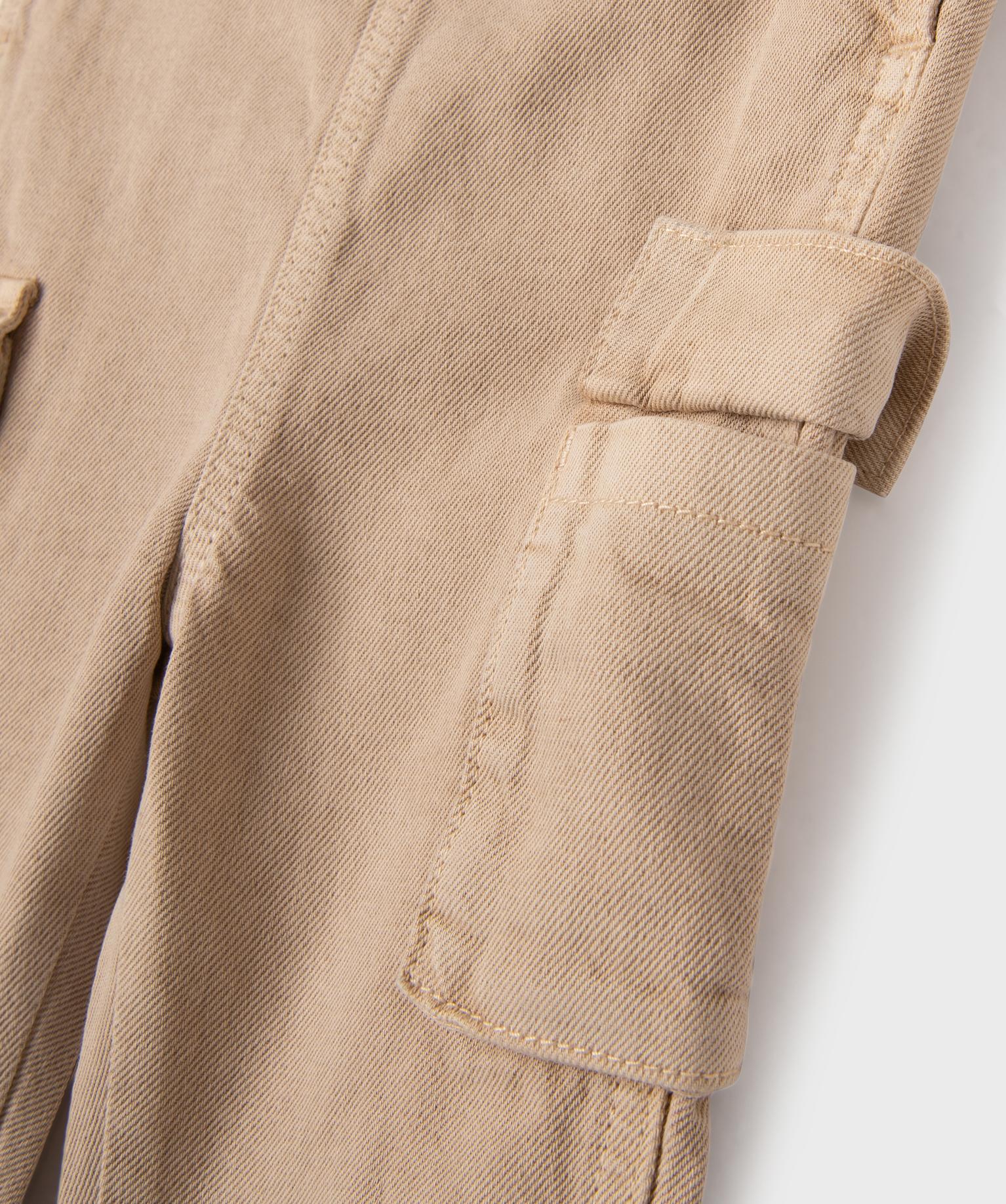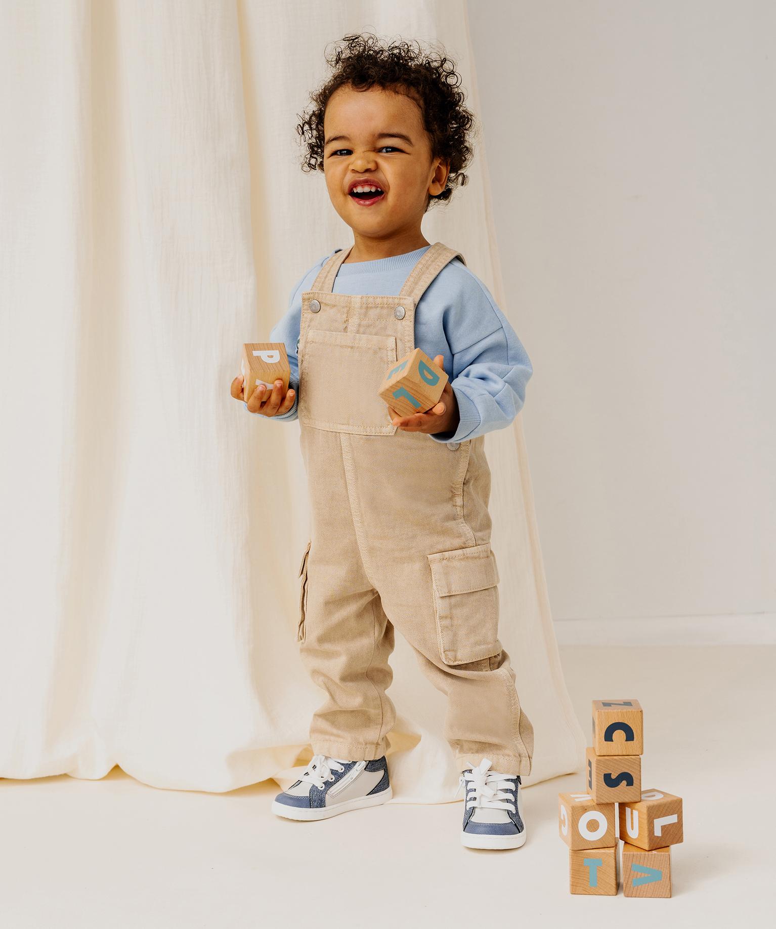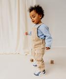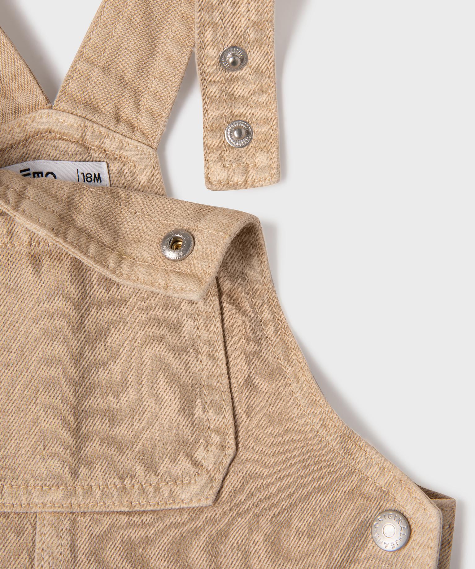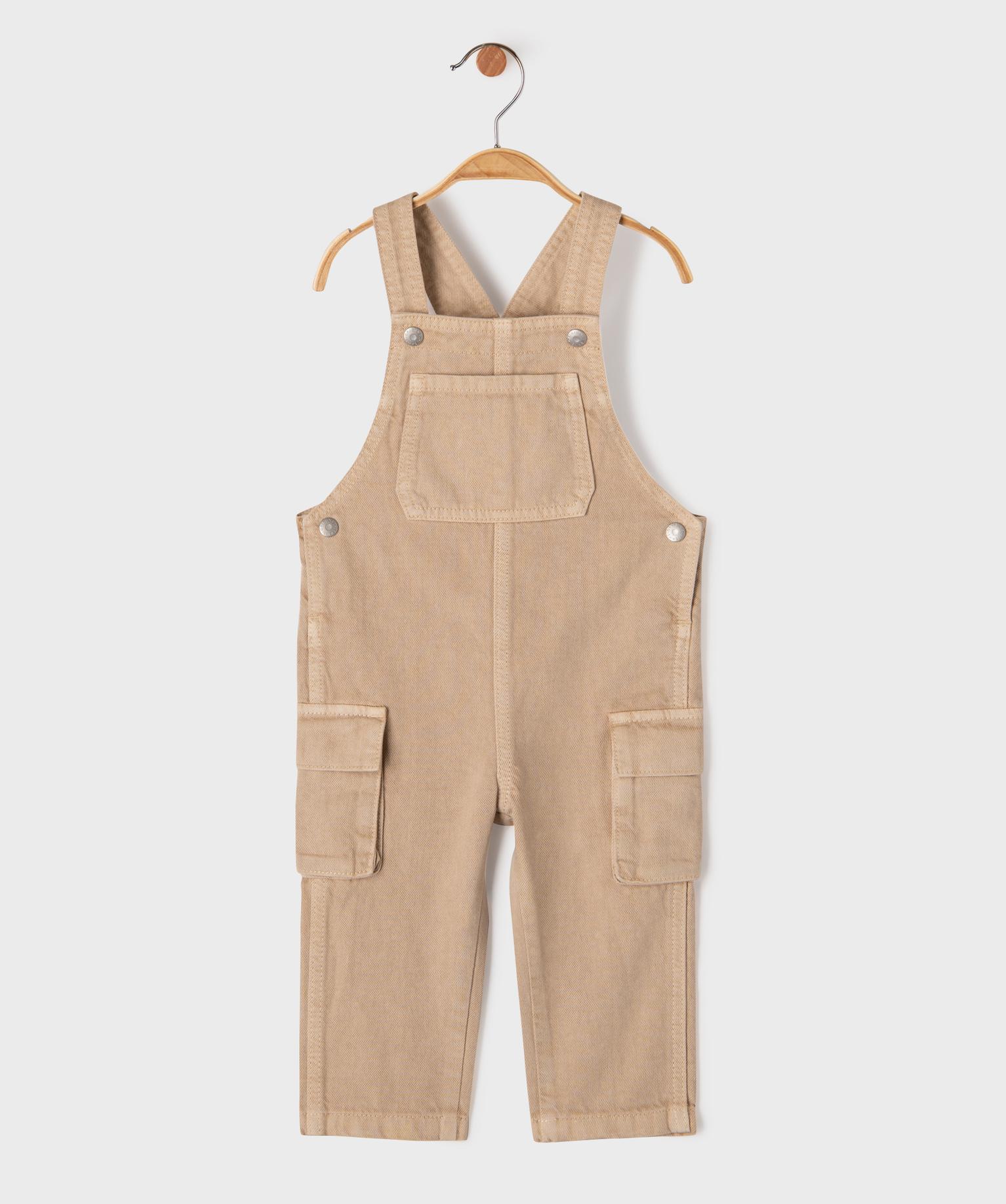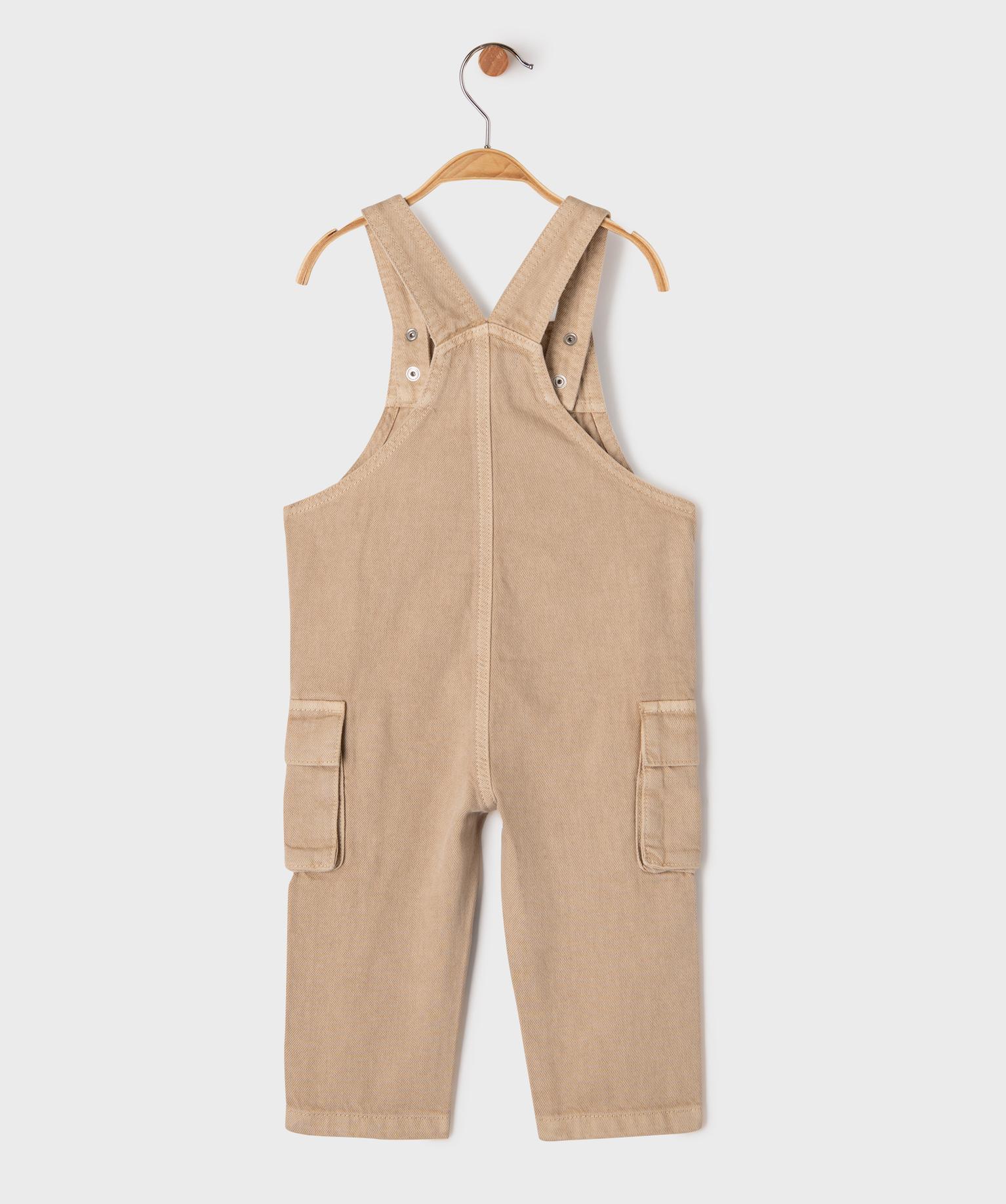 Salopette en toile denim bébé garçon avec poches cargo beige fonce