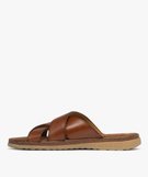 Ces sandales pour homme allient confort et look tendance, pour accompagner vos tenues estivales avec élégance. Ces sandales enveloppent le pied de trois brides en cuir doublées d’un textile rembourré très confortable, et possèdent une semelle intérieure en cuir suédé intégrant une fine couche de mousse. Des sandales dessus cuir posées sur une semelle très légèrement compensée pour offrir un meilleur confort de marche. Elles se portent avec un bermuda ou un pantalon en toile retroussé, tout au long de la saison estivale.