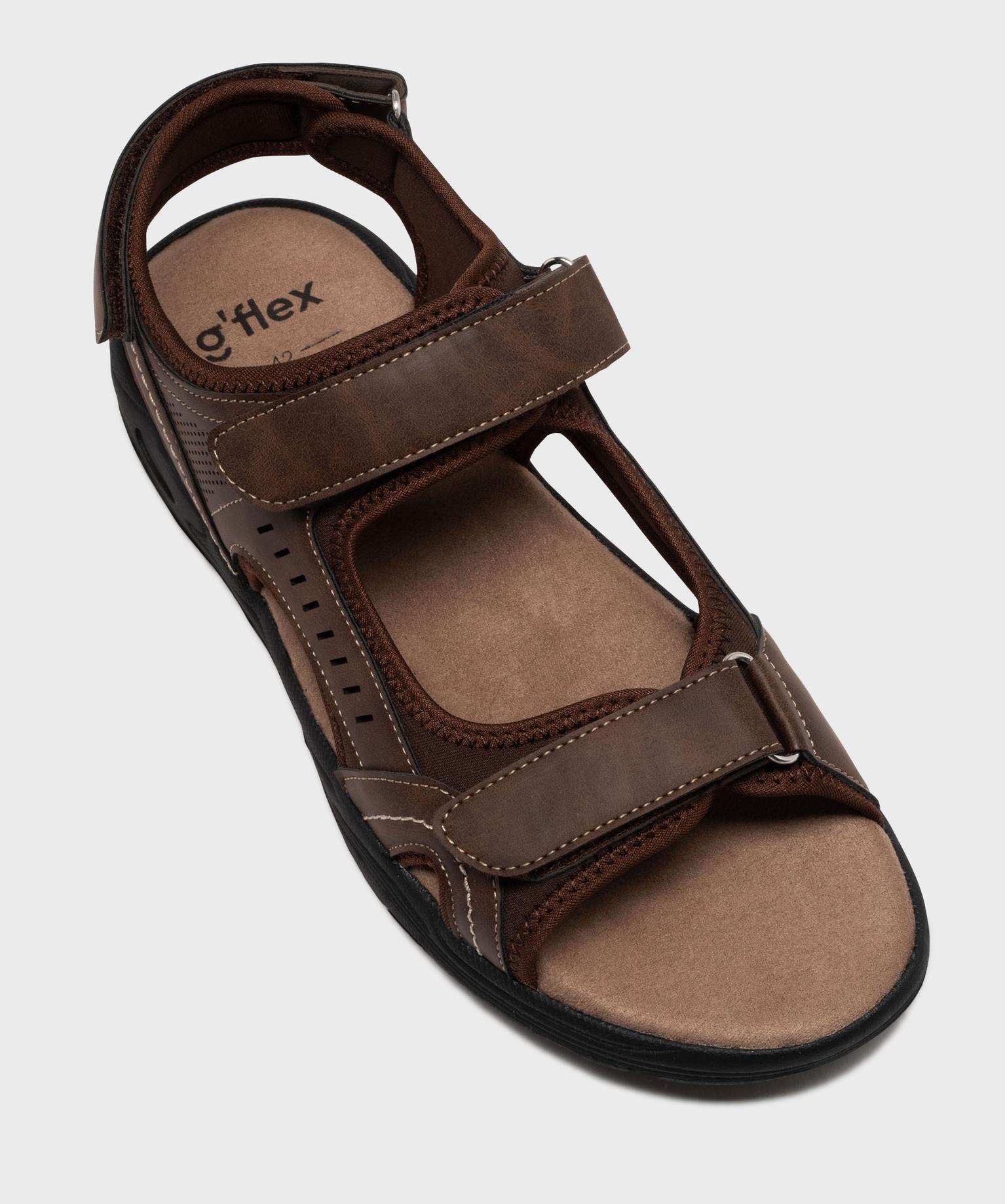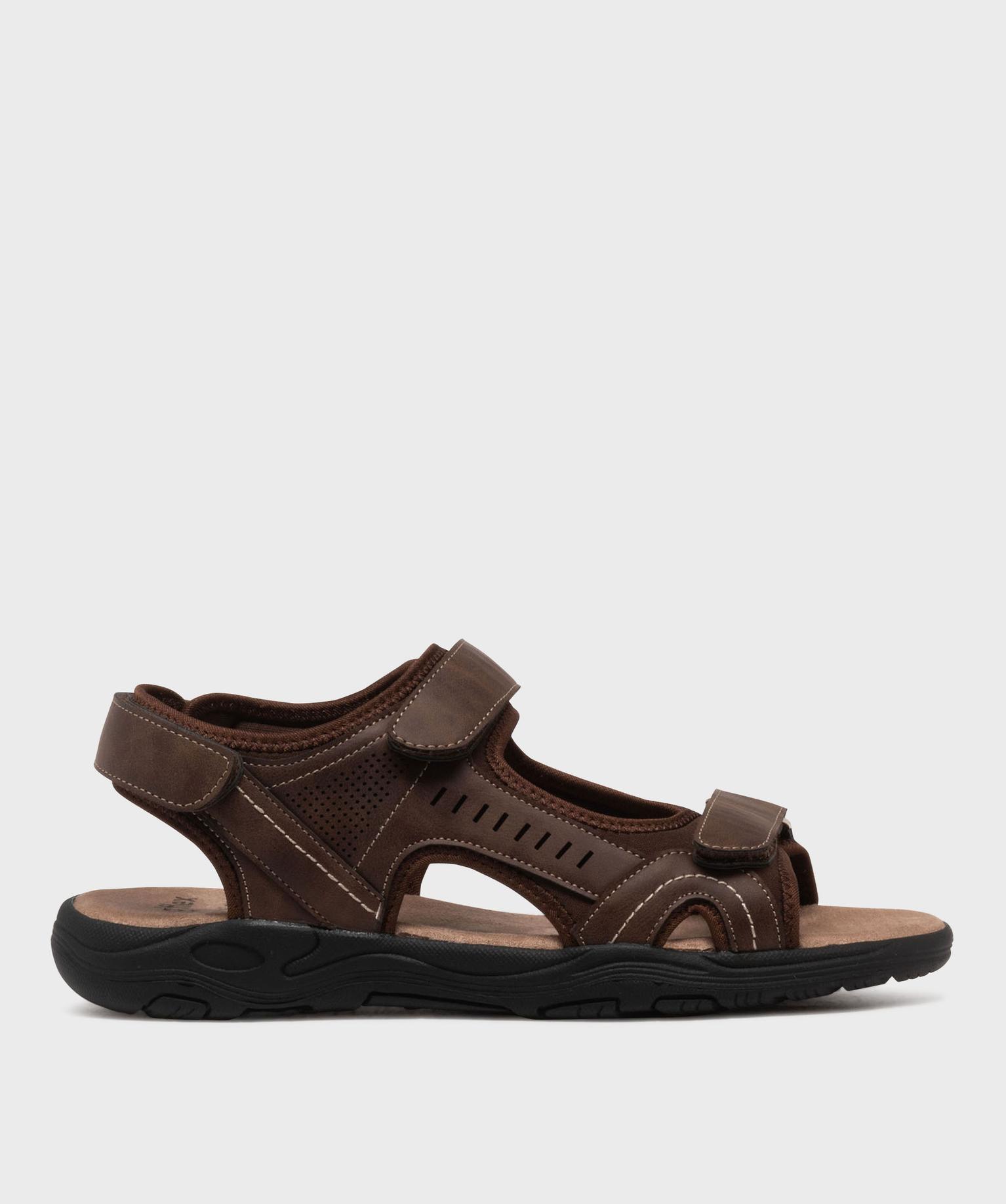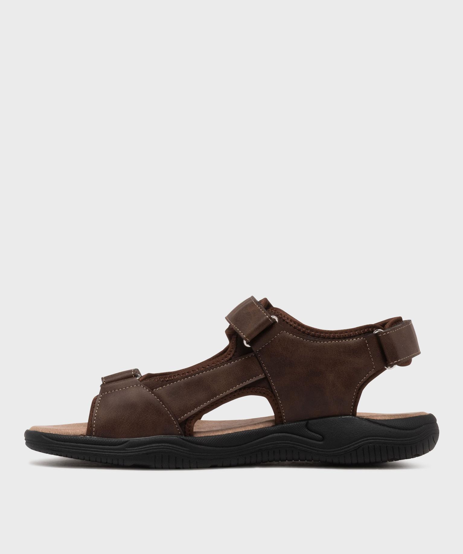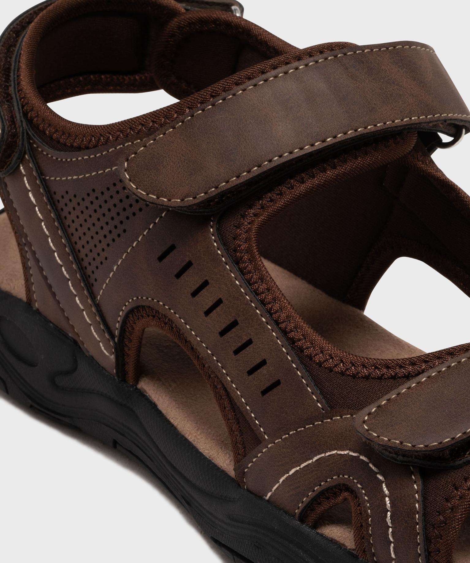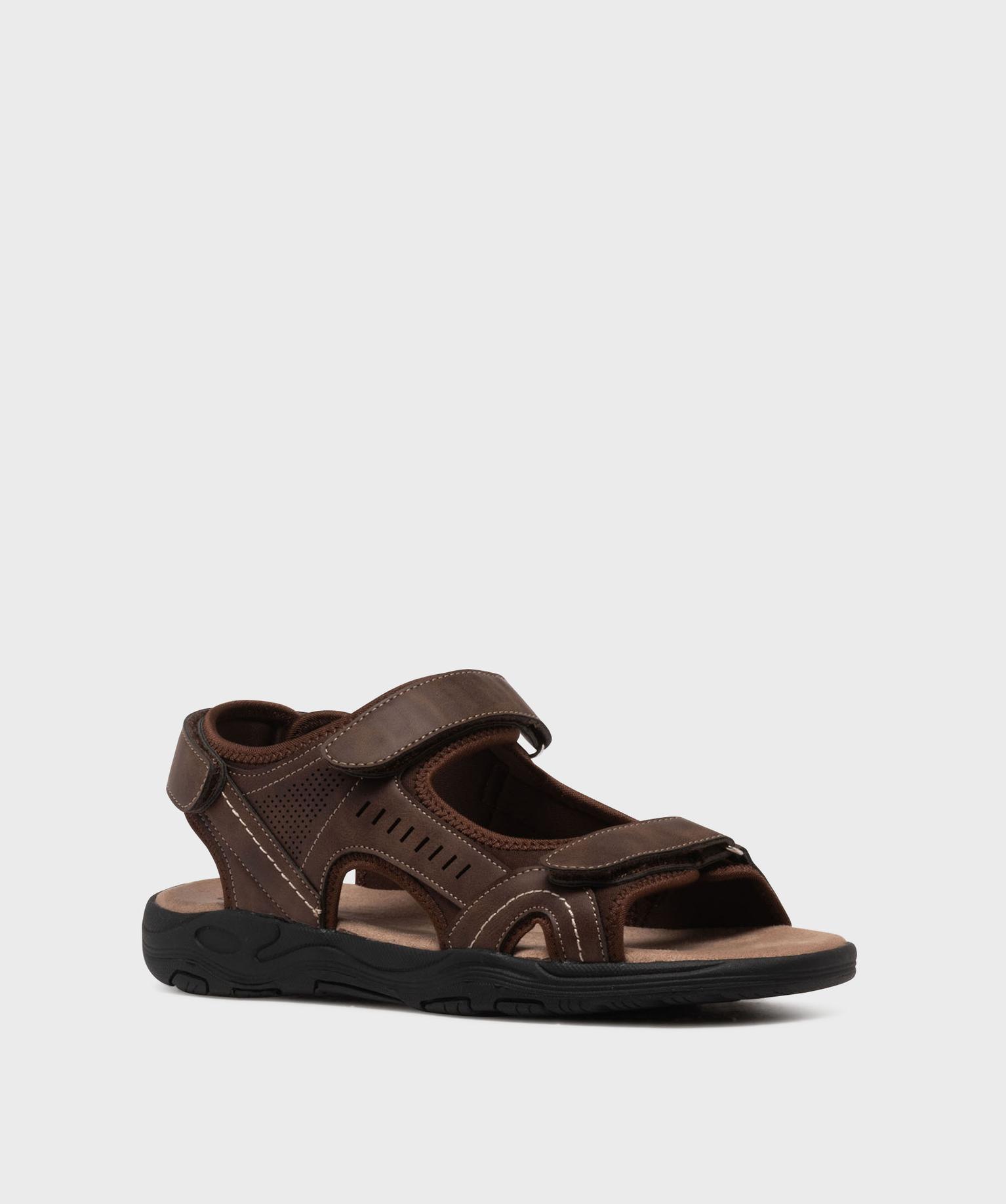 Sandale confort fermeture 3 scratchs homme marron fonce