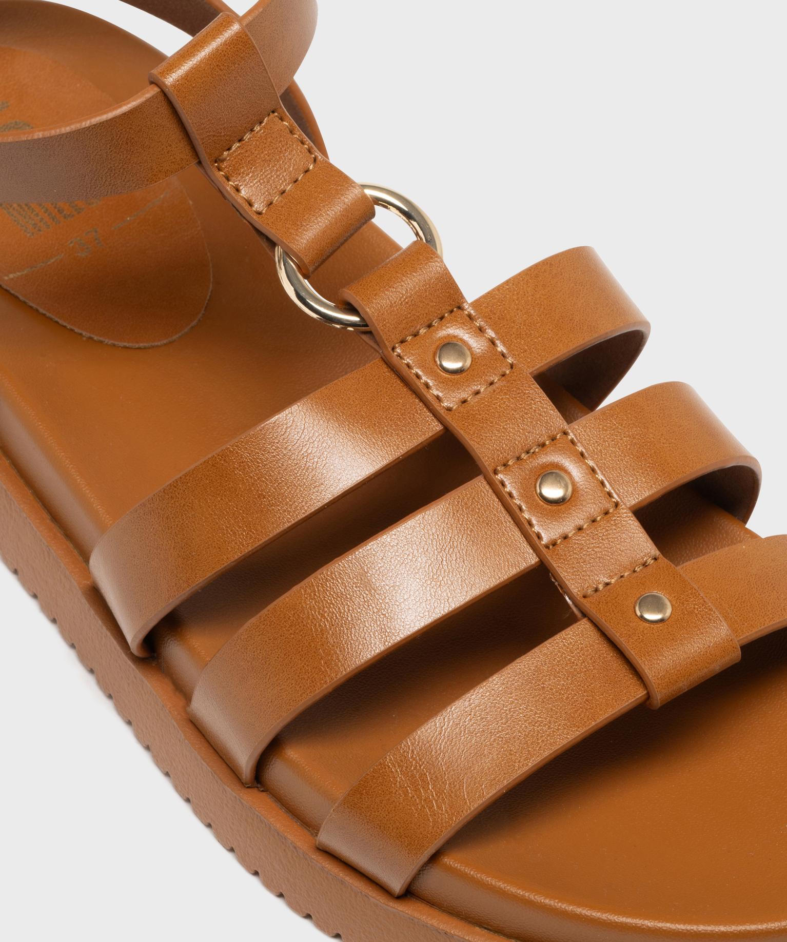 Sandales à brides avec détails métalliques femme - 5 Miles marron