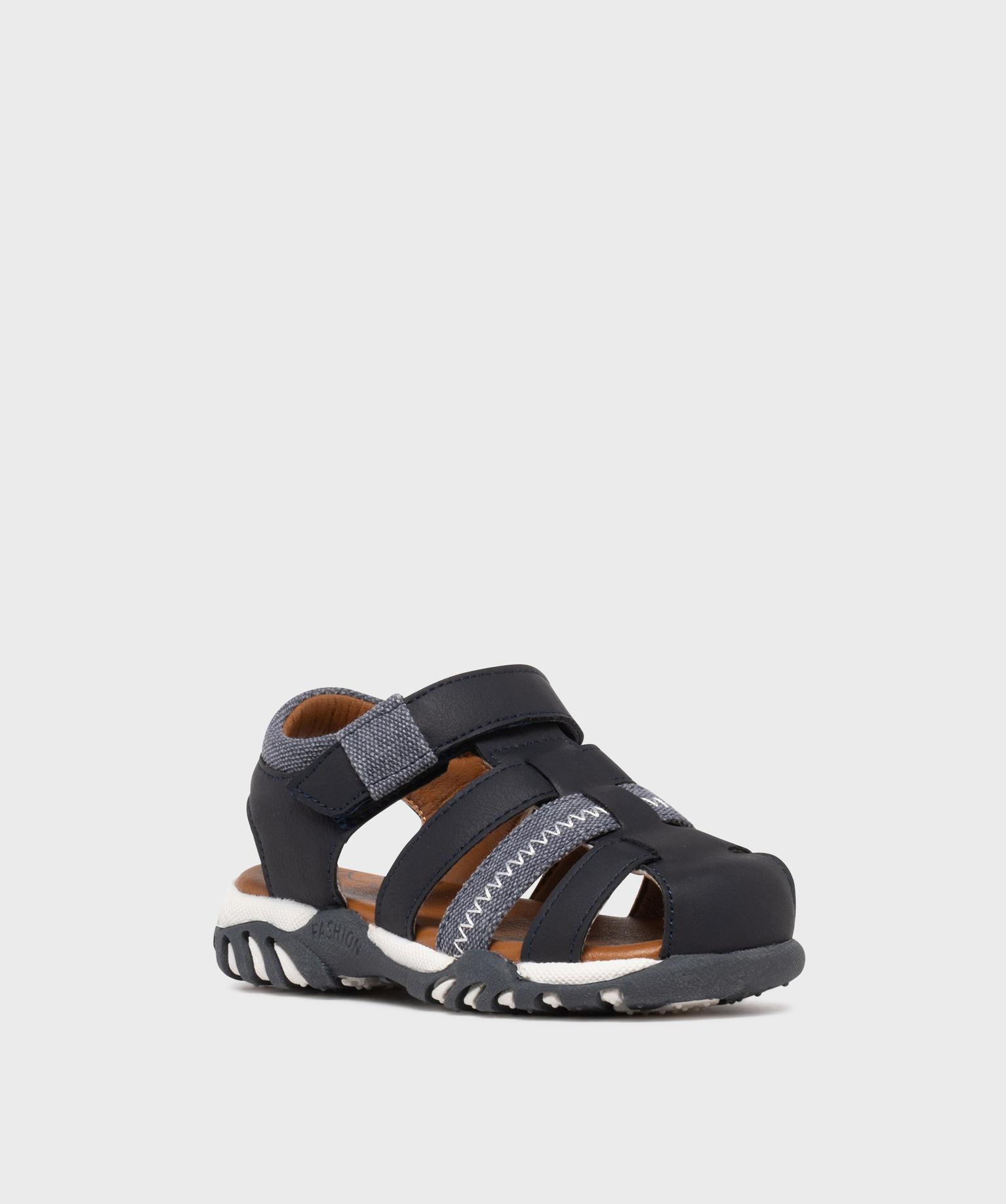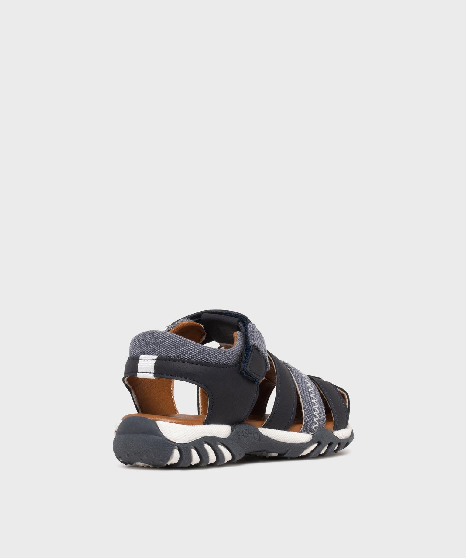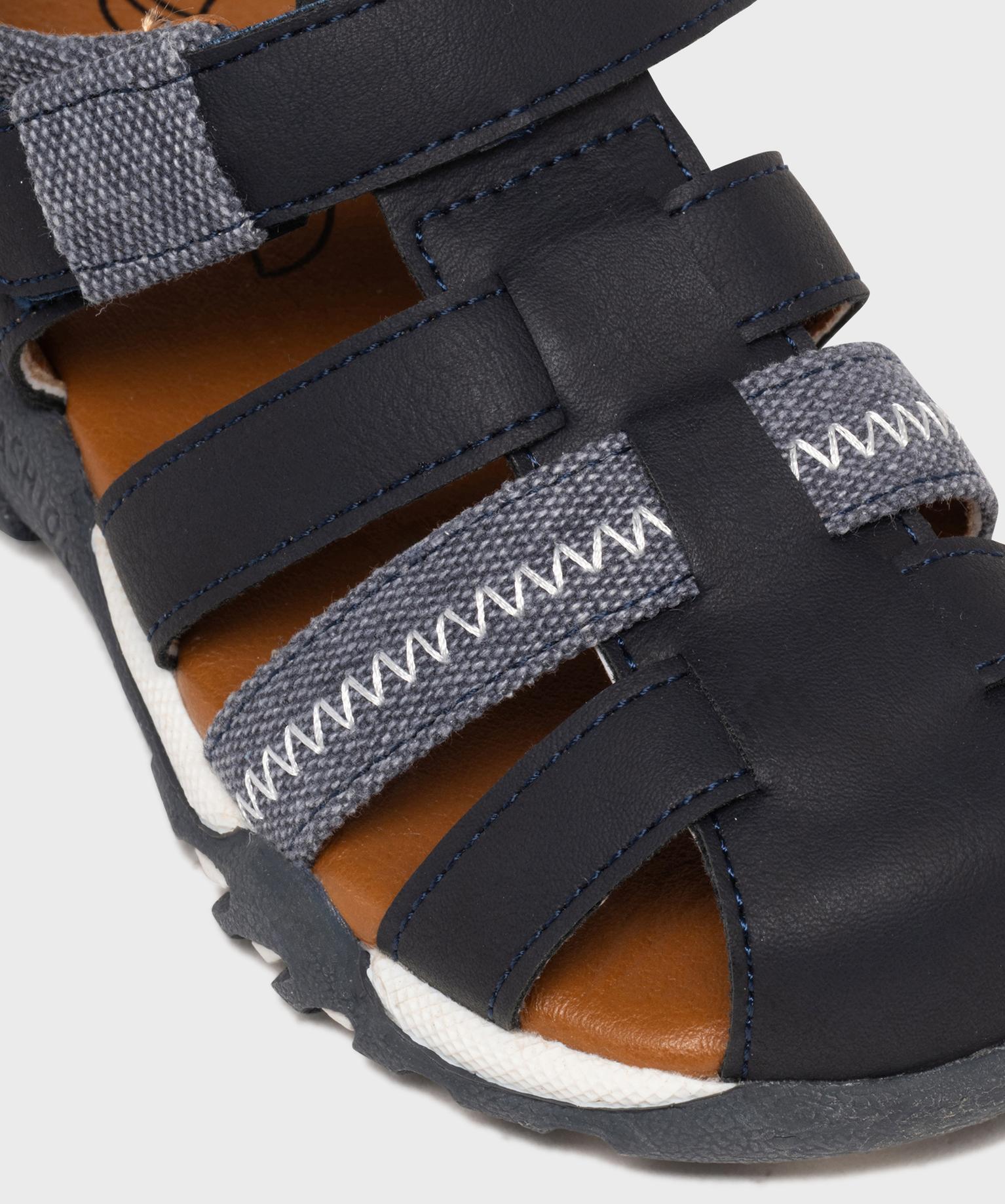 Sandales à brides bi-matières garçon - Buggy bleu marine