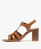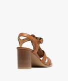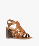Sandales à brides dessus cuir à talon haut femme - Tanéo marron