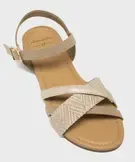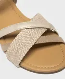 Sublimez vos pieds avec ces élégantes sandales pour femme composées d’une large bride tissée et de deux brides plus fines, l’une mate, l’autre métallisée. Grâce à leurs lanières entrecroisées sur l’avant et autour de la cheville, ces sandales Valentina Baldano assurent un bon maintien du pied. Elles se ferment à l’aide d’une boucle métallique dissimulant un élastique d’aisance. Des sandales plates à porter avec une robe longue pour un style bohème chic et tendance.