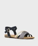 Sublimez vos pieds avec ces élégantes sandales pour femme composées d’une large bride tissée et de deux brides plus fines, l’une mate, l’autre métallisée. Grâce à leurs lanières entrecroisées sur l’avant et autour de la cheville, ces sandales Valentina Baldano assurent un bon maintien du pied. Elles se ferment à l’aide d’une boucle métallique dissimulant un élastique d’aisance. Des sandales plates à porter avec une robe longue pour un style bohème chic et tendance.