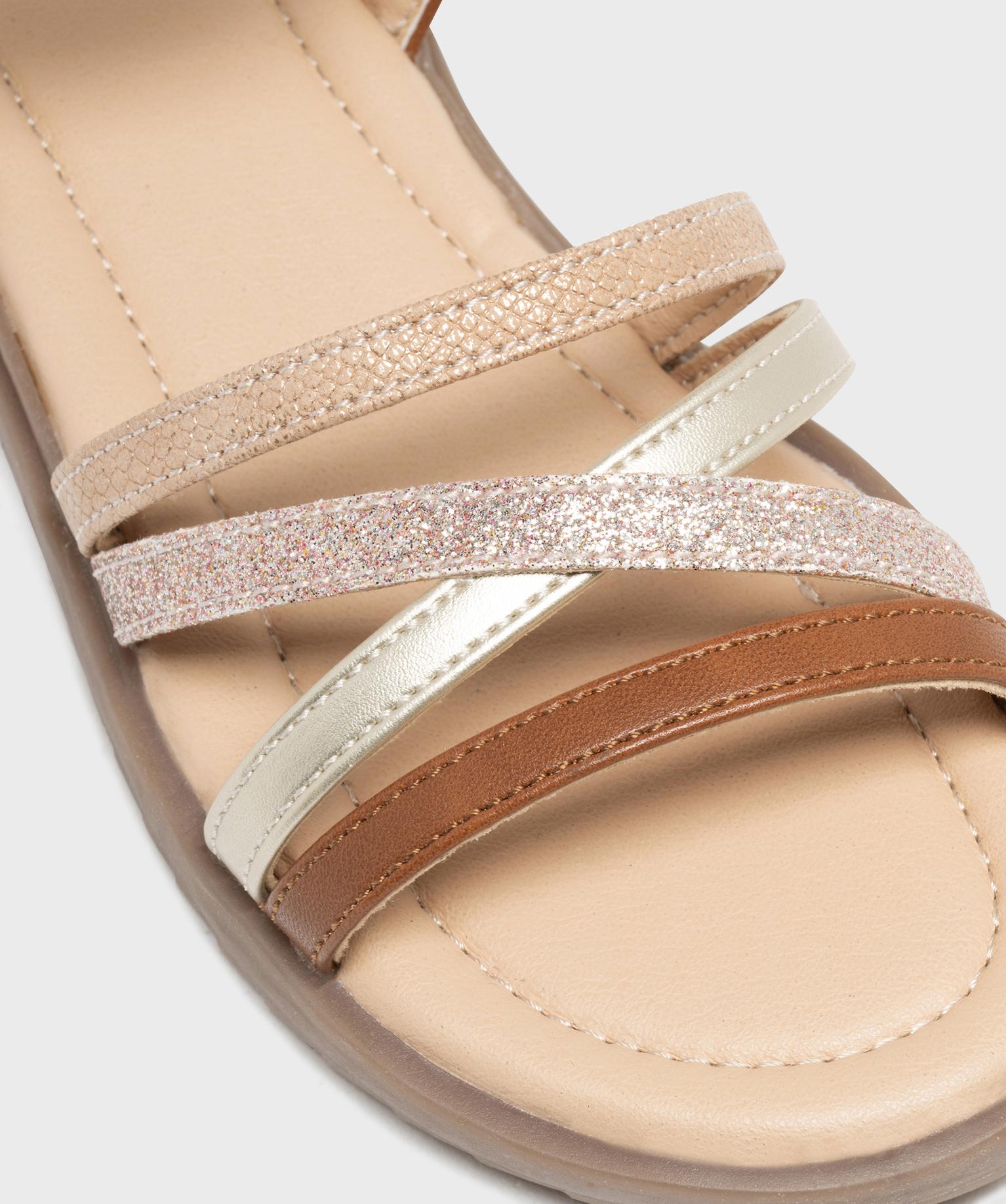 Les sandales à brides font partie des chaussures indispensables de la saison estivale, parfaites pour accompagner les tenues légères tout en laissant respirer les pieds. Ces sandales Lovely Wings se distinguent par leur élégant mix de fines brides en cuir imitation mêlant différentes textures lisses, métallisées, embossées et pailletées. La bride cheville se ferme facilement par un scratch, facilitant la manipulation par les enfants. Ces sandales fille possèdent une semelle intérieure rembourrée et reposent sur une semelle antidérapante avec couche d’usure crantée.